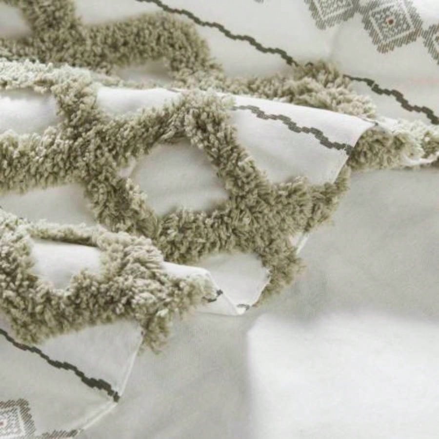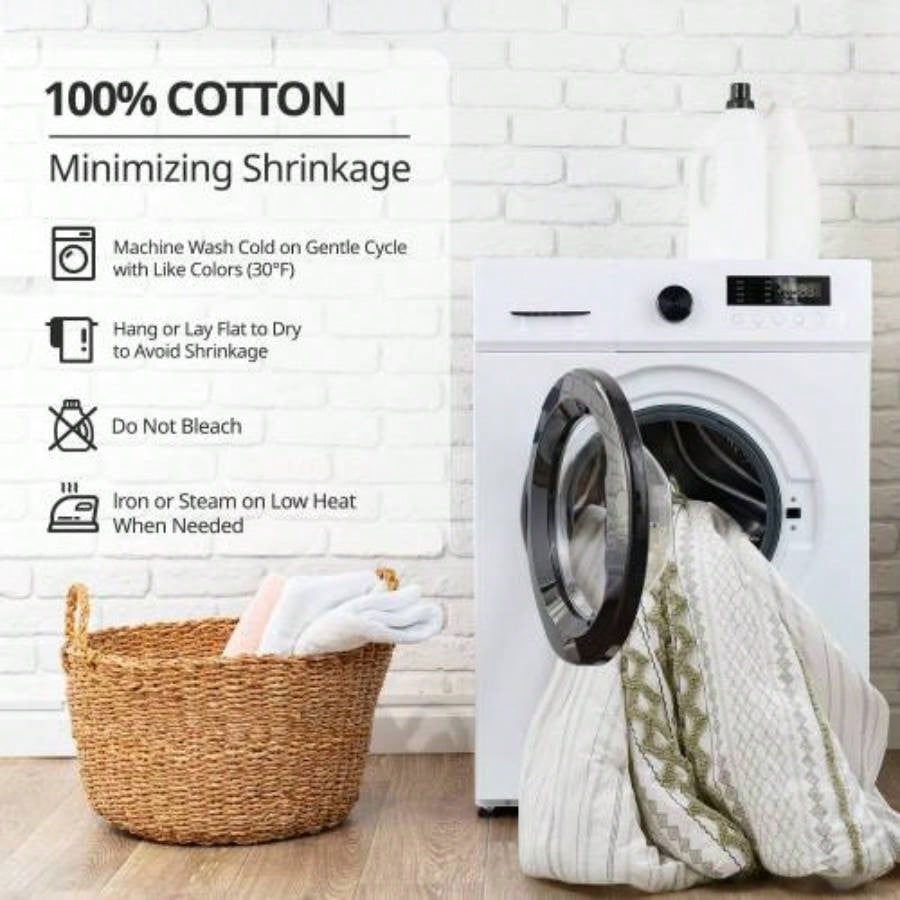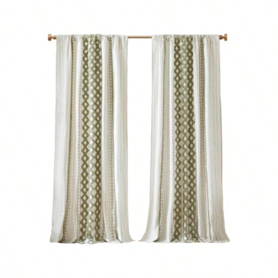 1 PCS 50x95 Cotton Printed Curtain Panel with Chenille Stripe and Lining Green
