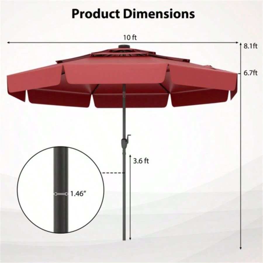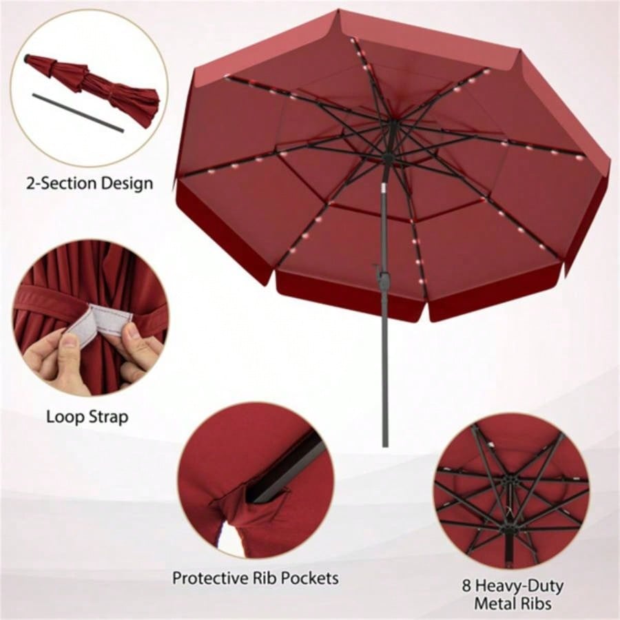 10 foot red terrace with powered LED lights and multi - layered ventilated roof