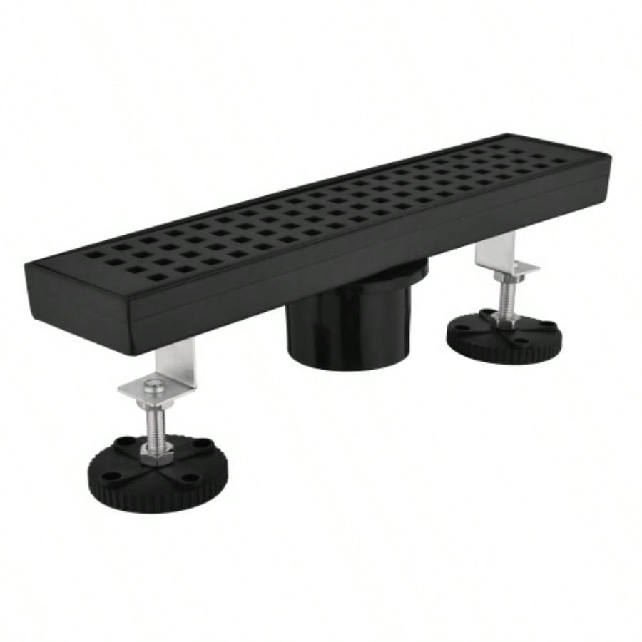 12 Inches Linear Shower Drain with Removable Quadrato Pattern Grate, 304 Stainless Shower Drain Included Hair Strainer and Leveling Feet