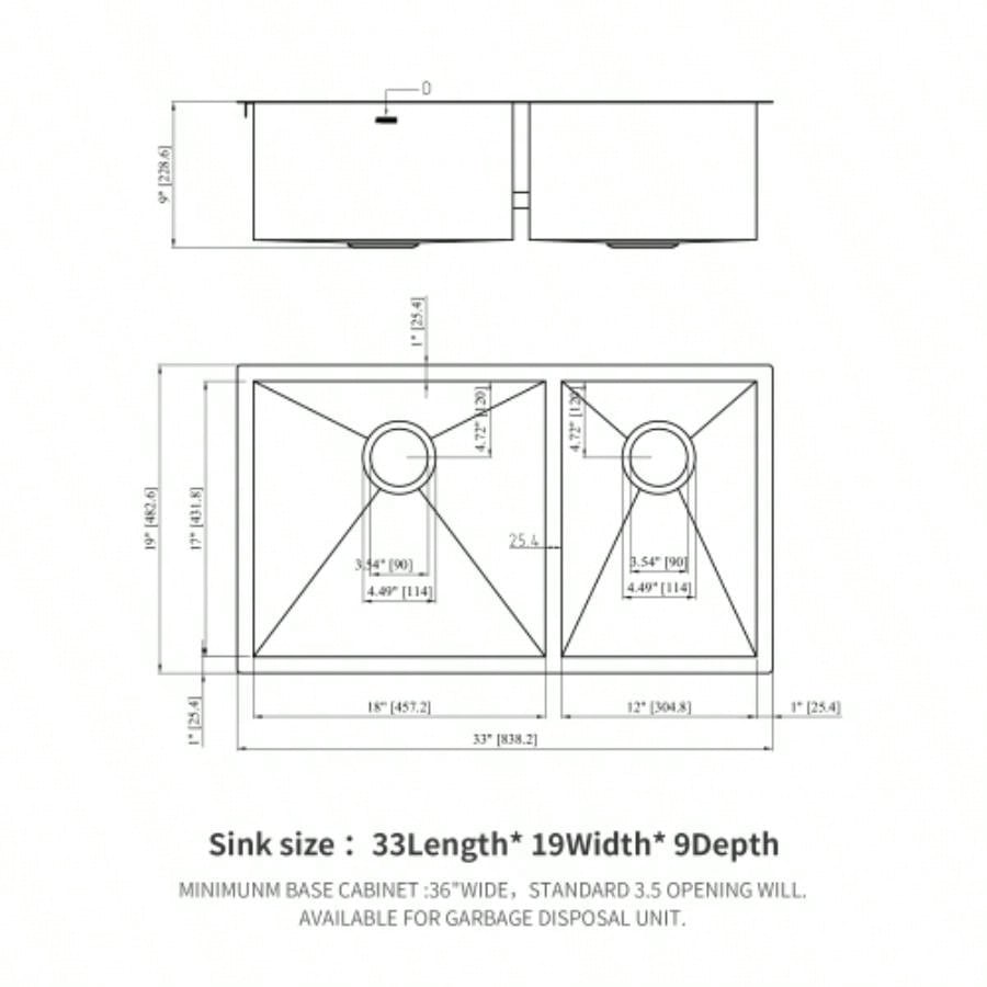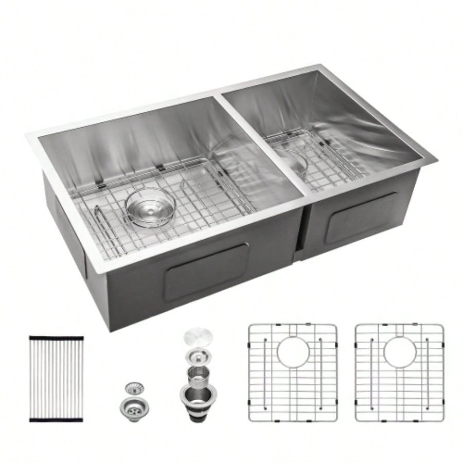 16 Gauge Stainless Steel 33x19 inch Undermount Double Bowl Kitchen Sink 60/40 with 9 Inch Deep Sink
