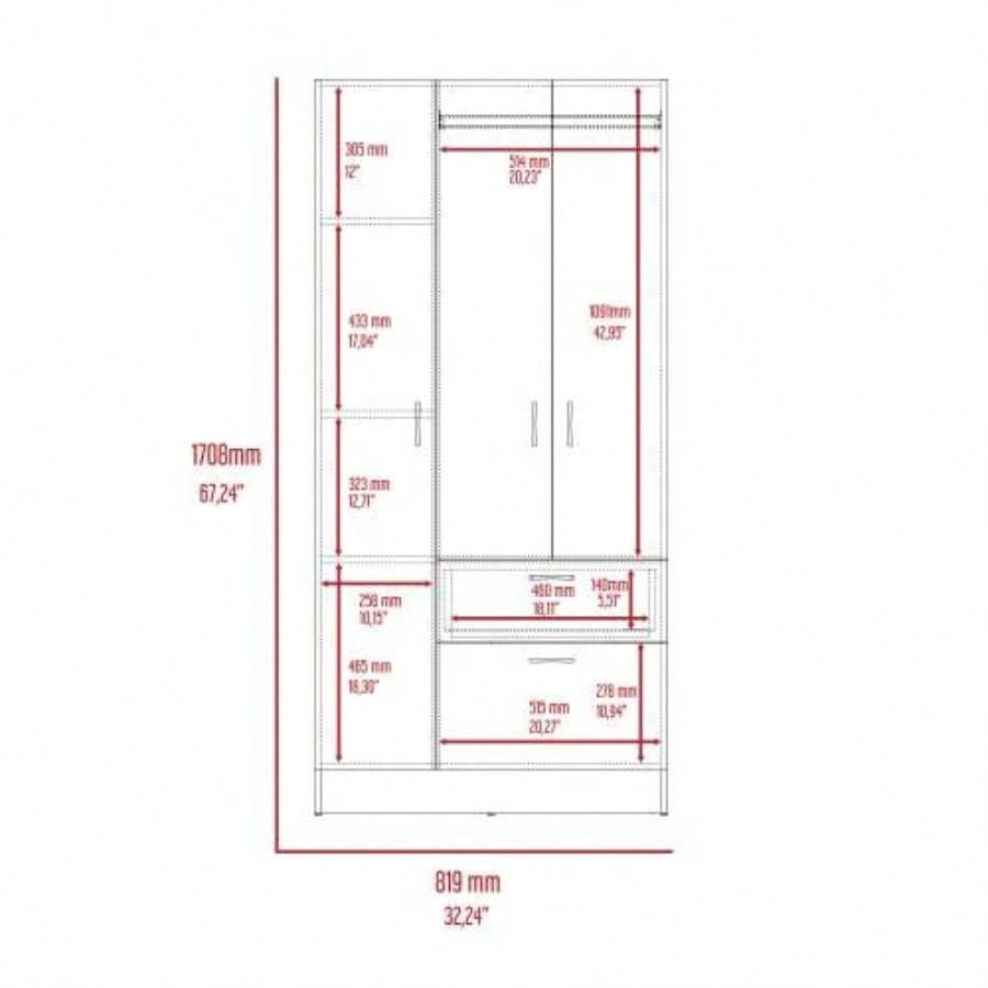 2 Piece Bedroom Set, Cartagena Armoire+ Three Drawer Dresser, Black
