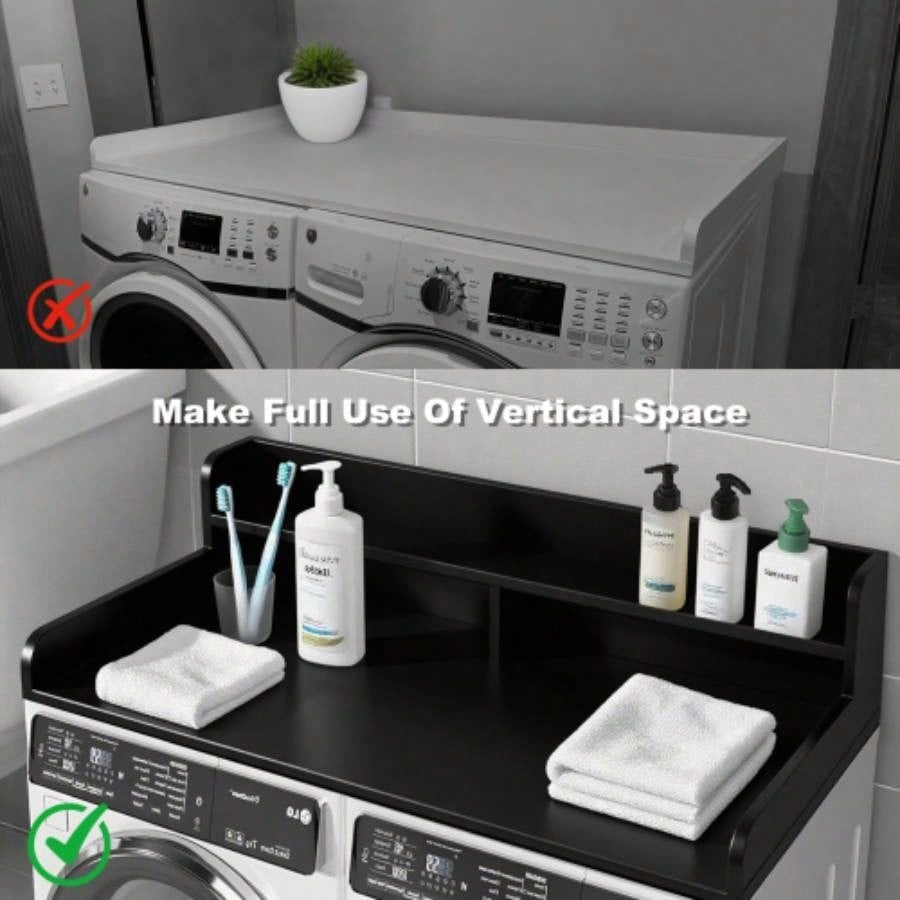 2 - Tier Washer and Dryer Countertop with 2.75 H Guard, 54x 27.5 D Laundry Countertop Cover, Large Space Laundry Topper Folding Clothes Over Washer and Dryer, Black
