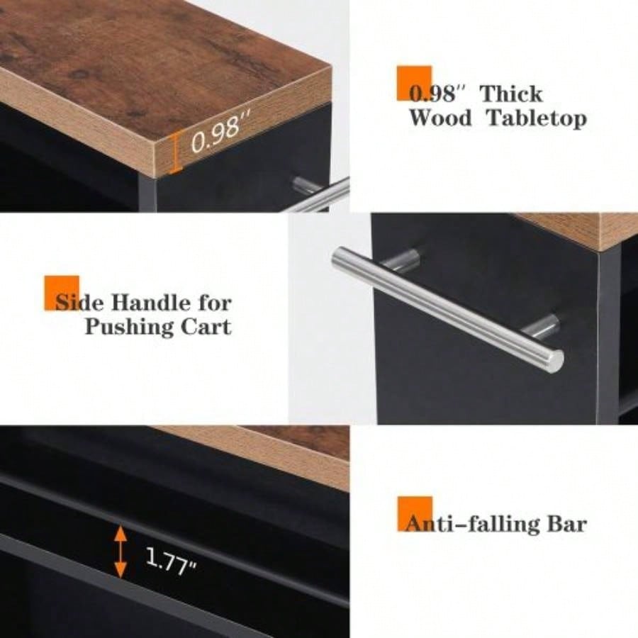 20 Slim Storage Cart - 4 - Tier Narrow Rolling Kitchen Utility Cart with Wheels Handle, Laundry Room Organizer, Slide Out Pantry Shelf Small Spaces, Bathroom - Brown Black
