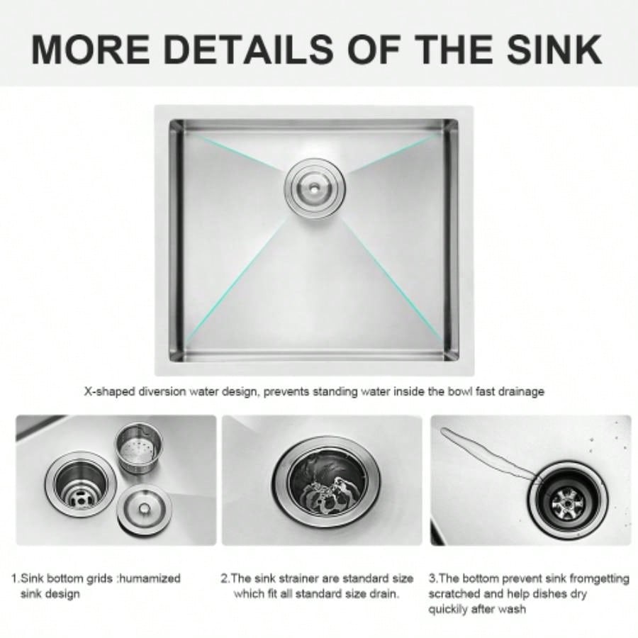 23 Inch Undermount Sink - 23x 18x 9 Undermount Stainless Steel Kitchen Sink 16 Gauge 9 Inch Deep Single Bowl Kitchen Sink Basin, Includes Drain Assembly No Additional Accessories
