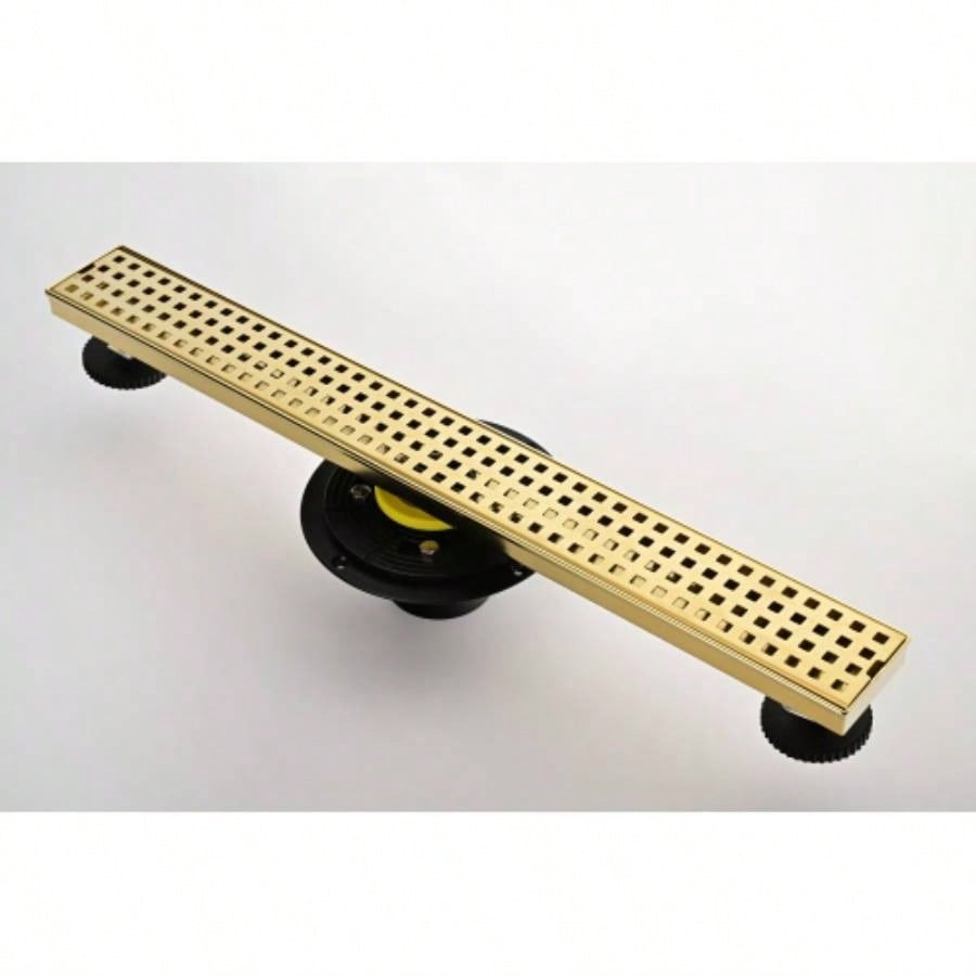 24 Inches Linear Shower Drain with Removable Quadrato Pattern Grate, 304 Stainless Shower Drain Included Hair Strainer and Leveling Feet, Flange