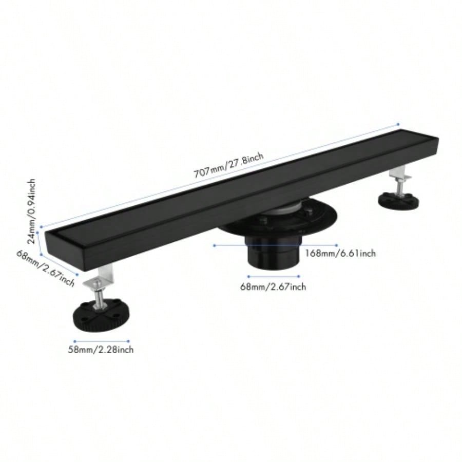 28 Inches Linear Shower Drain with Removable Cover, 304 Stainless Shower Drain Included Hair Strainer and Leveling Feet, Flange