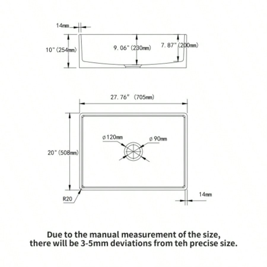 28 White Farmhouse Sink - 28 Inch Kitchen Sink Ceramic Single Bowl with Drain Assembly and Bottom grid