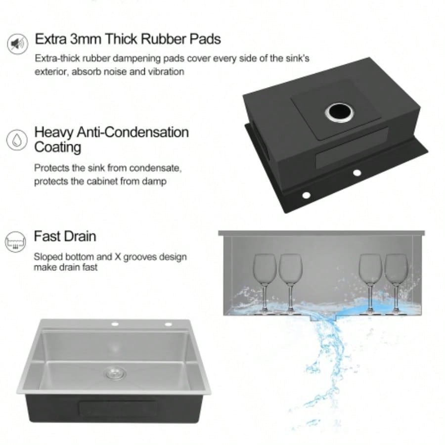 28x 22 Drop In Stainless Steel Workstation Sink, 28 Inch 18 - Gauge Stainless Steel Drop - In Kitchen Sink, Handmade Single Bowl Workstation R10 Rounded Corner kitchen Sink with Accessories