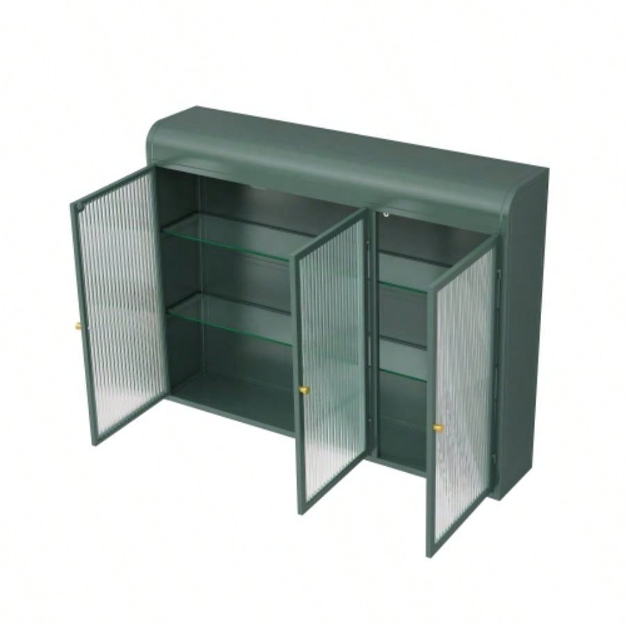 3 Door Arched Wall Mounted Glass Cabinets Kitchen, Living Room and BathroomDark green