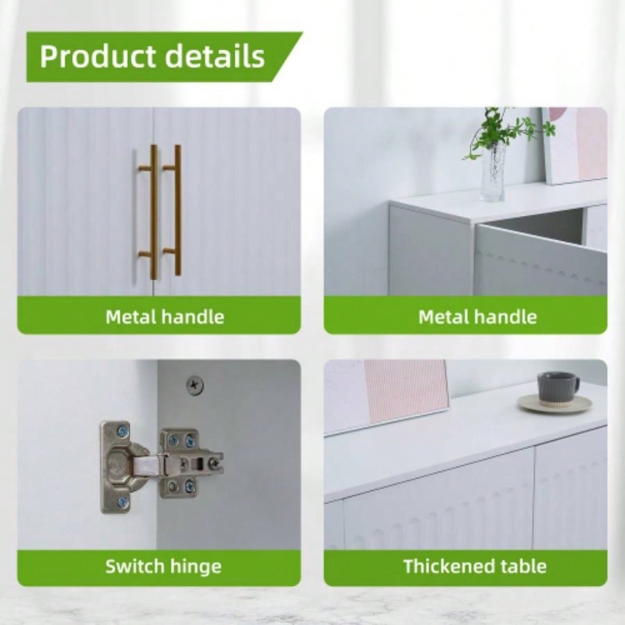 3 - Door Large Storage Sideboard with Gold Handles Kitchen, Dining Room and Living Room. 55.12 Accent White Buffet Cabinet, Coffee Bar Sideboard Cabinet with 3 doors White