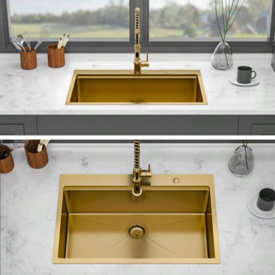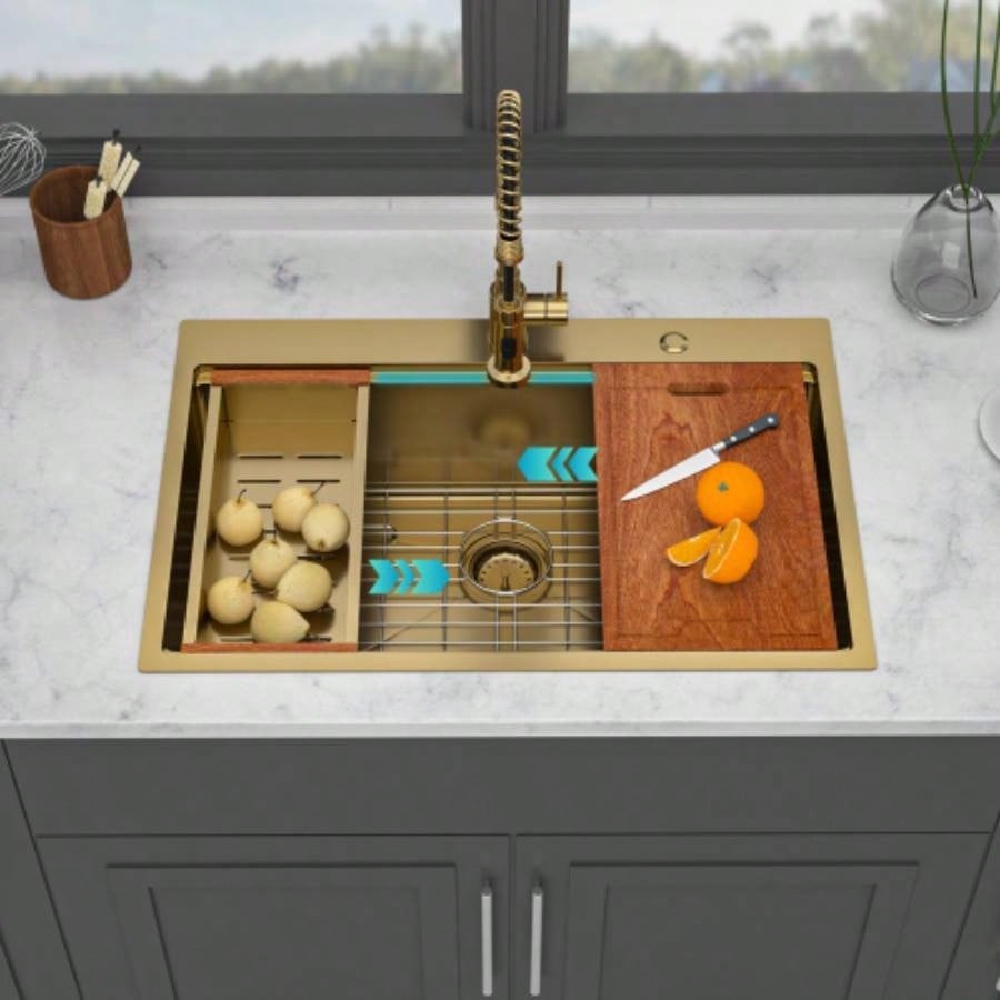 33 Drop in Gold Kitchen Sink - 33*22 inch Kitchen Sink Drop - in Topmount Single Bowl 16 Gauge Stainless Steel Ledge Workstation Kitchen Sinks