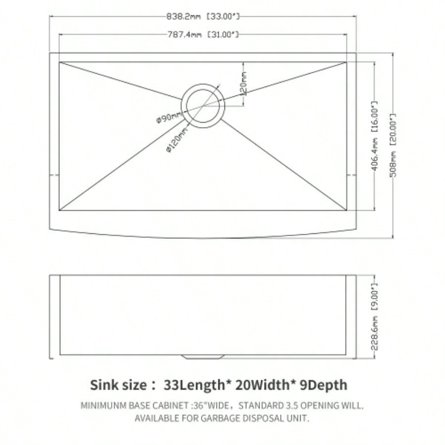 33 Farmhouse Sink - 33 Inch Kitchen Sink Stainless Steel 16 gauge Apron Front Kitchen Sink