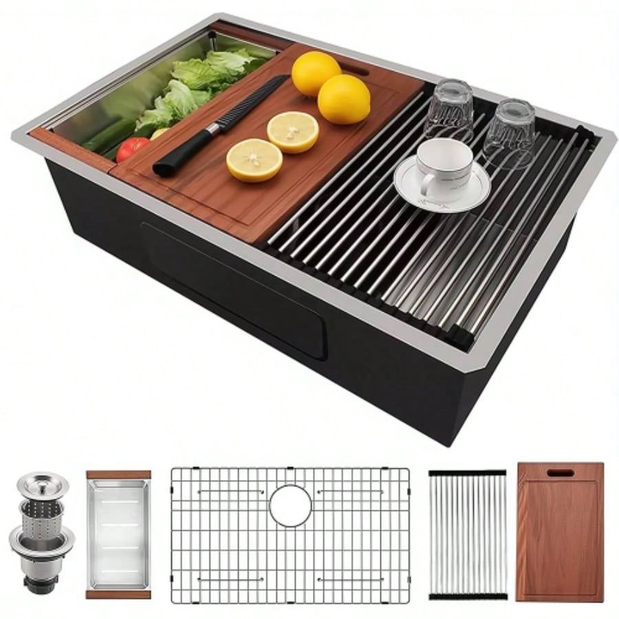 33 Undermount Workstation Sink - 33x 19 Inch Undermount Stainless Steel Kitchen Sink 18 Gauge, Handmade R10 Radius 10 Inch Deep Undermount Single Bowl Sink with Accessories
