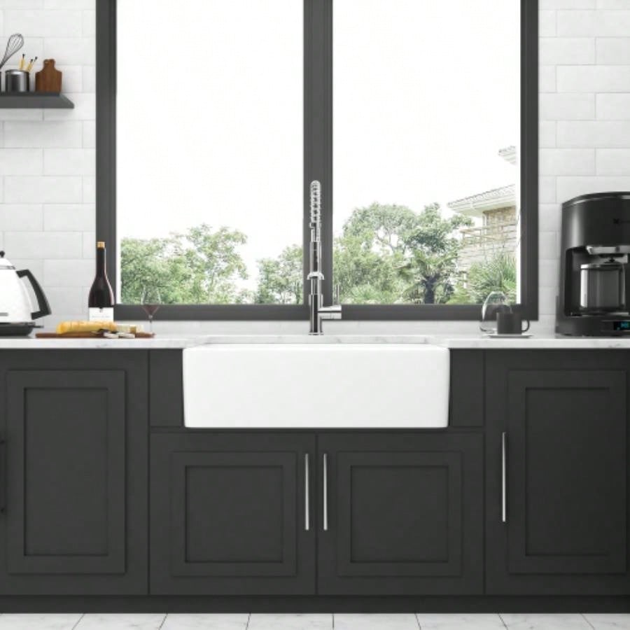 33 White Farmhouse Sink - 33 Inch Kitchen Sink Apron Front Ceramic Single Bowl Farmer Sink Basin