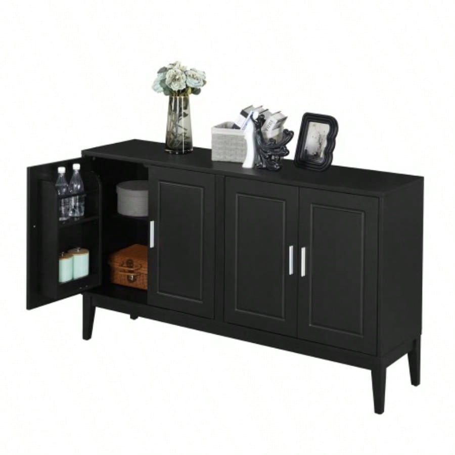 4 - Door Sideboard Storage Cabinet with Door Shelf Living Room and Dining Room, Two Large Cabinets with Adjustable Shelf, Black