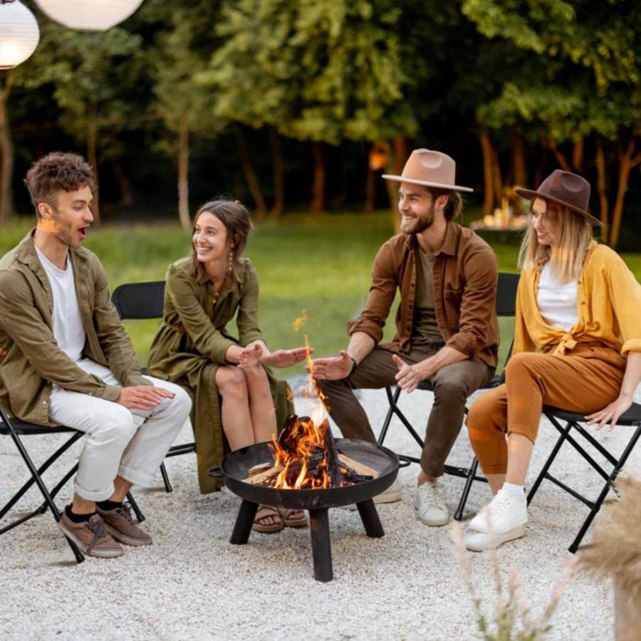4pcs Injection Molding Classic Garden Plastic Folding Chair Black