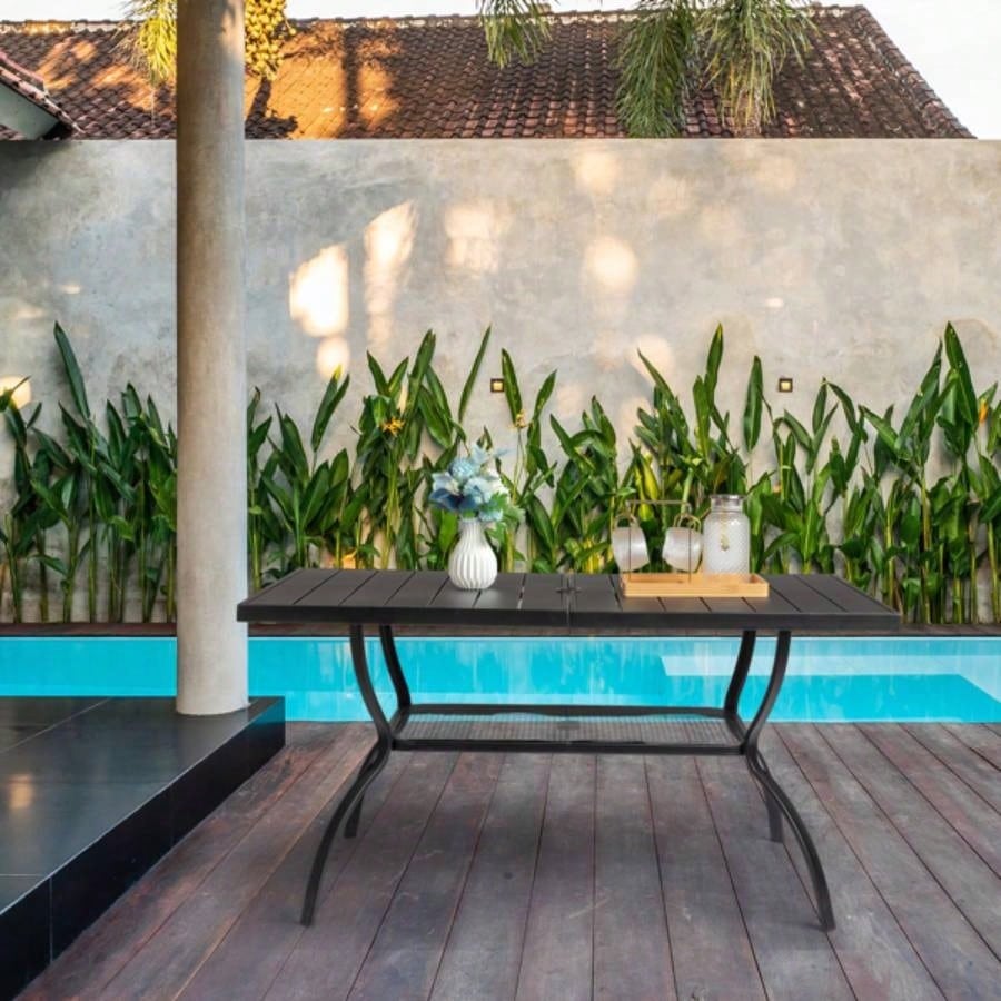 60*38*28.5in Iron With Hole Patio Bar Table Black