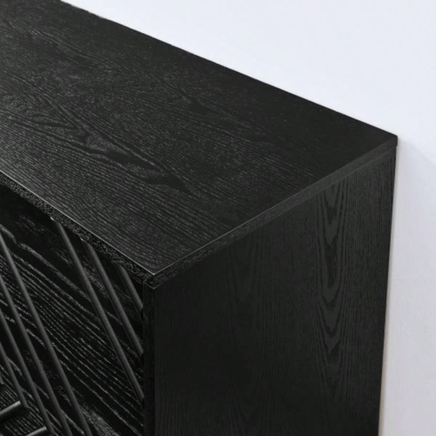 60.5 Buffet Cabinet with Storage, Farmhouse Fluted Sideboard with Geometric Pattern Adjustable Shelves, Mid Modern TV Stand Living Room Kitchen Dining Room Entryway, Black