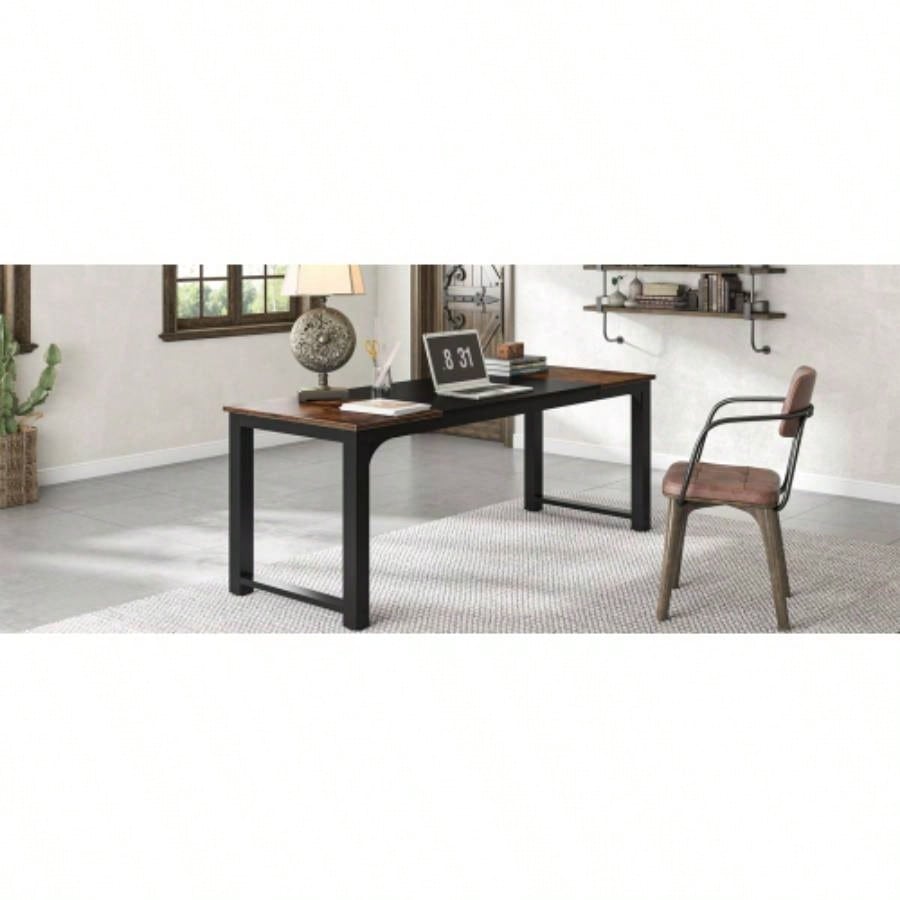 63 Executive Desk, Large Modern Office Computer Workstation with Thick Metal Frame, Business Furniture Home Office, Rustic Brown Black