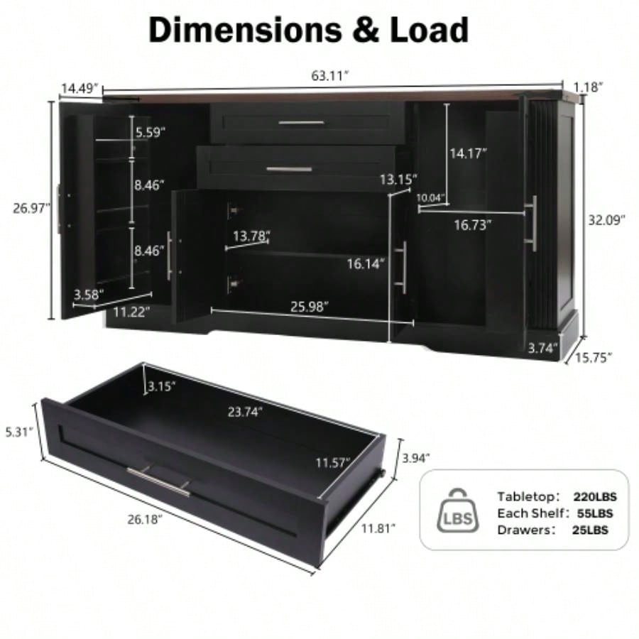 63 Farmhouse Barn Door Storage Cabinet with 2 Drawers Door Rack, Large Buffet Table Coffee Bar Cabinets with Adjustable Shelves Kitchen, Living Room, Entryway, Dining Room, Black
