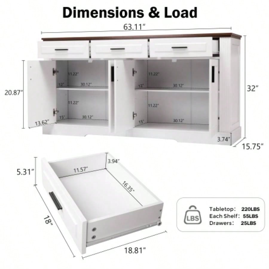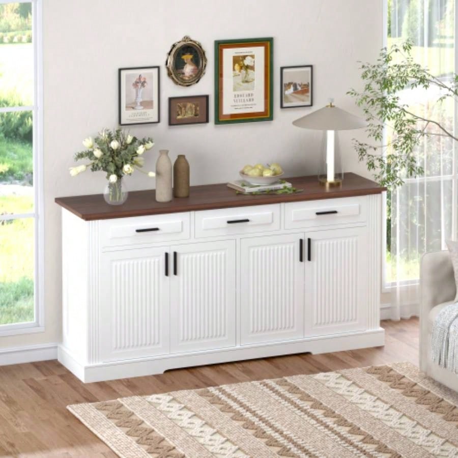 63 Fluted Sideboard Buffet Cabinet with Storage, Coffee Bar Station with 4 Doors and 3 Drawers, Kitchen Storage Console Table Living Room Dining Room Entryway, White