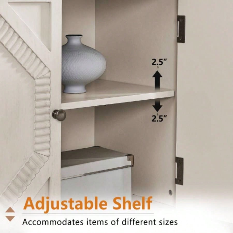 65.2 Mid Modern Sideboard Buffet Cabinet with Storage, Symmetrical Geometric Accent Coffee Bar Wine Bar Storage Cabinet, Large Console Table Living Room/Entryway/Kitchen, Antique White