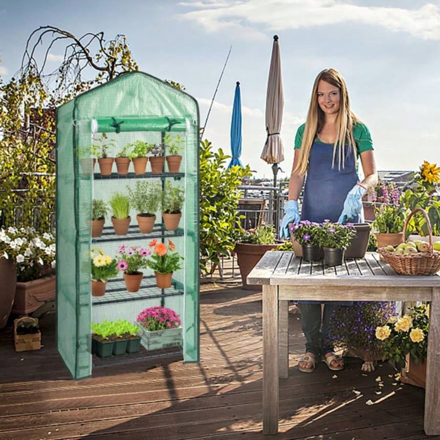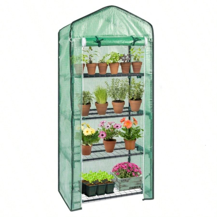 69x49x160cm Black Iron Pipe Pointed Flower Stand With 4 Layers Of Grid, With Zipper Rolling Door, PE Cloth Green House
