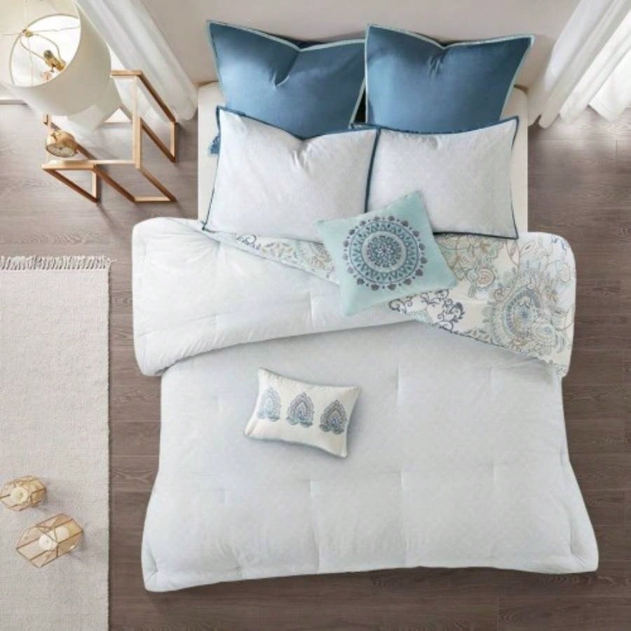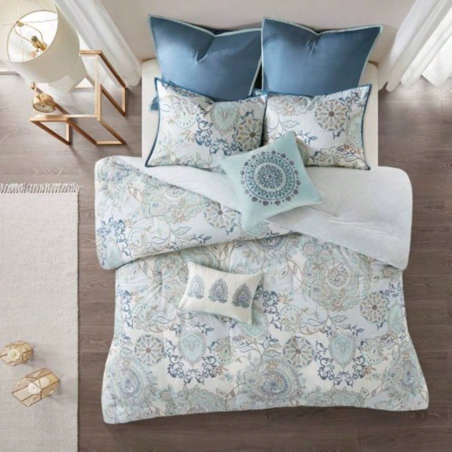 8 Piece Cotton Floral Printed Reversible Comforter Set Blue