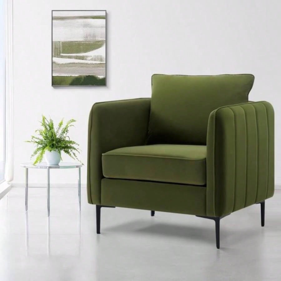 Accent Chair Living Room, Velvet Comfy Single Sofa Chair Mid - Modern Armchair with 1 Pillow and Metal Bedroom Office Reading