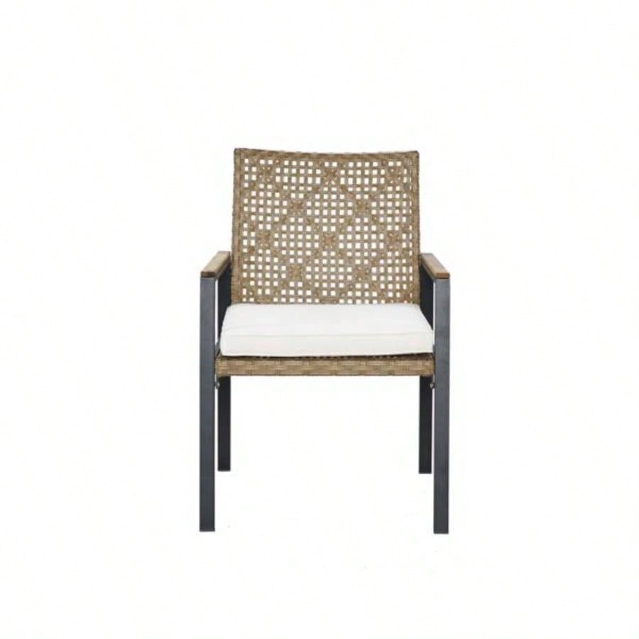 All Weather 5 - Piece Patio Dining Table Sets, Patio Conversation Set Acacia Wood Table Top with Hole, Rattan Outdoor, Yellow Color