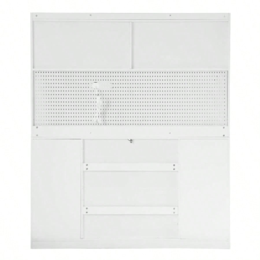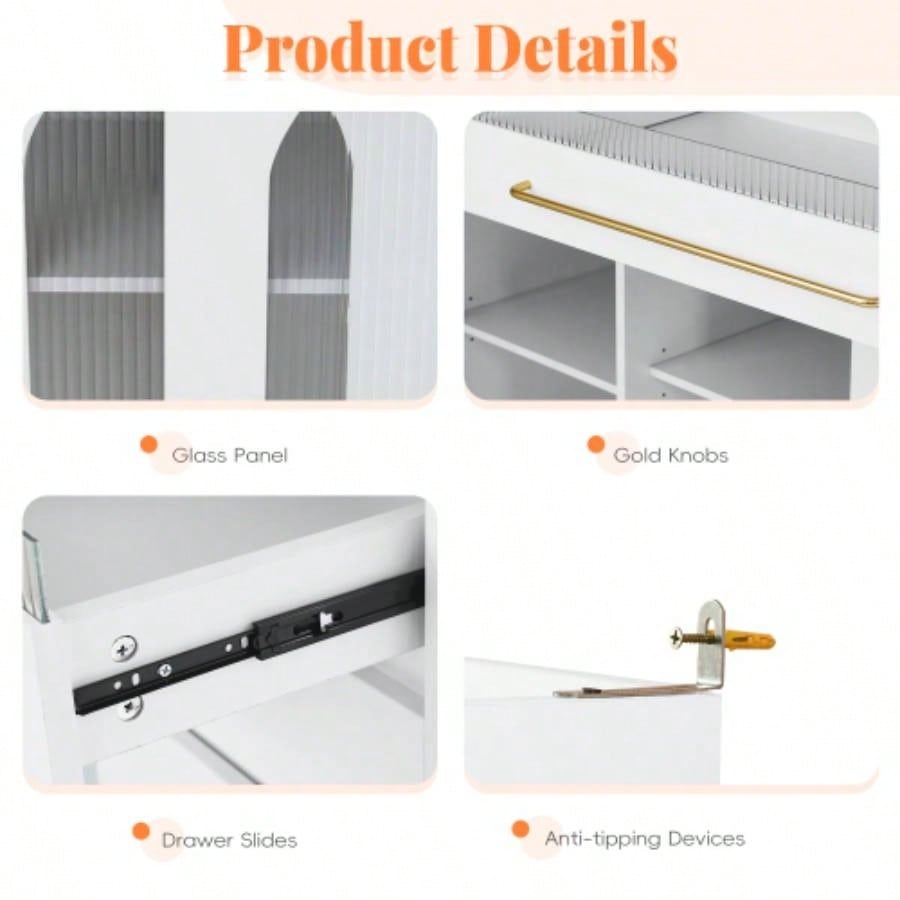 Assembly Video Offered TOPMAX Freestanding 63 Buffet with Hutch, Large Coffee Bar Storage Cabinet with 6 Drawers, 5 Cabinets with Adjustable Shelves, Pegboard, Towel Rack, Power Outlet, White
