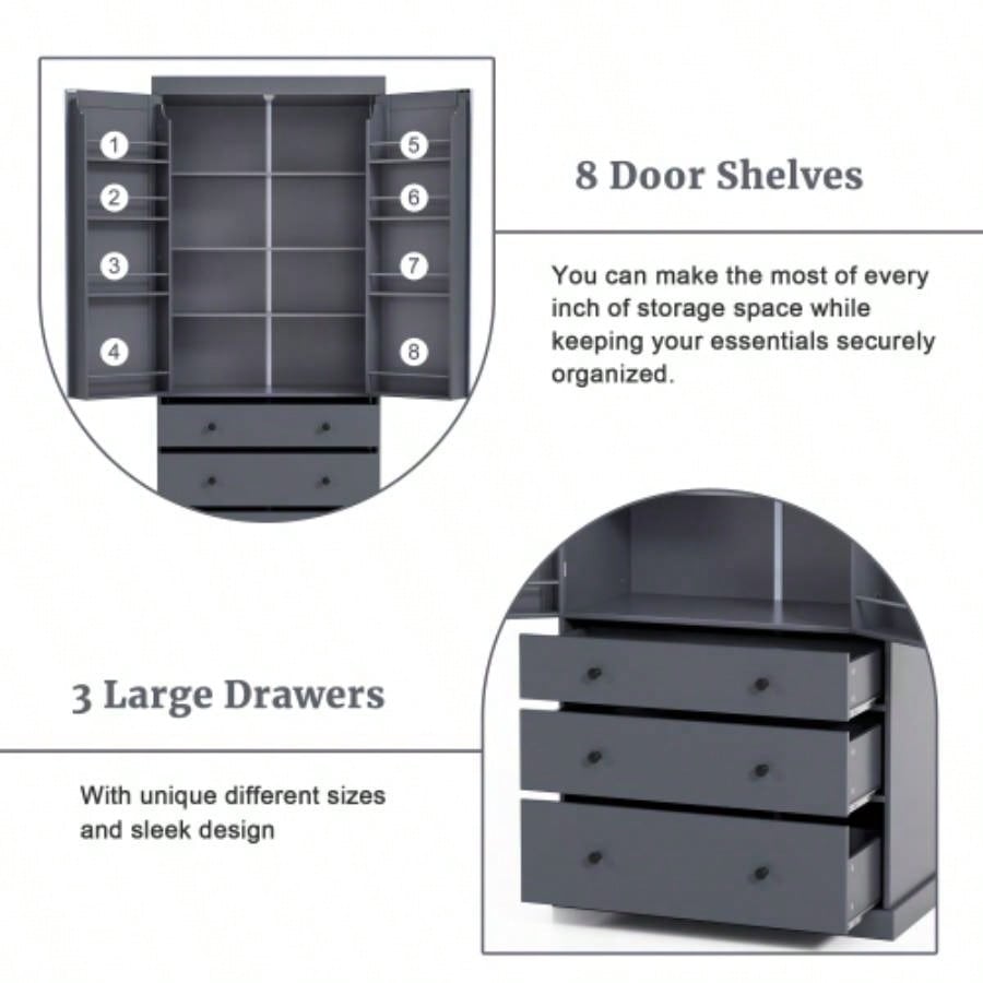 Assembly Video ProvidedTOPMAX 77inch Farmhouse Kitchen Pantry, Freestanding Tall Cupboard Storage Cabinet with 3 Adjustable Shelves, 8 Door Shelves, 3 Drawers Kitchen, Dining Room, Gray