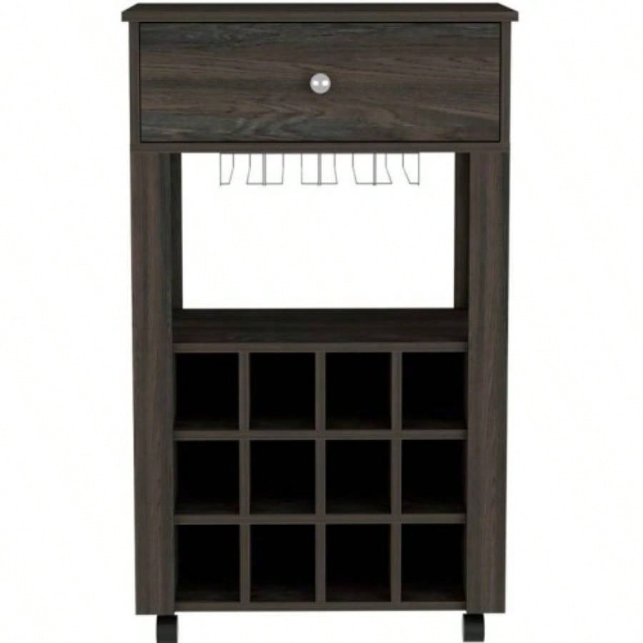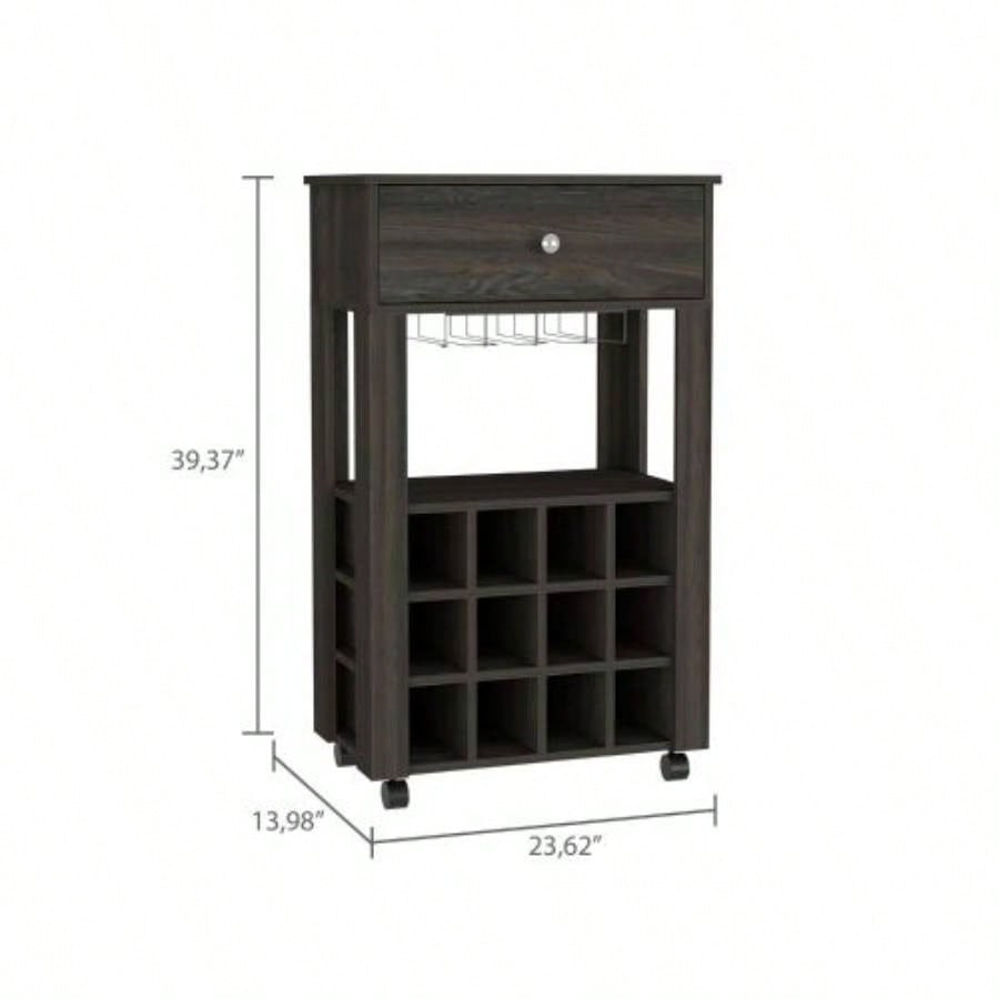 Bar Cart, Twelve Built - in Wine Rack, Four, One Open Shelf - Espresso