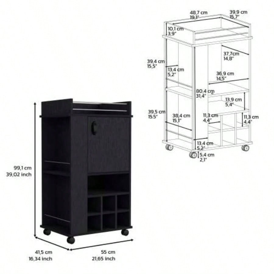 Bar Cart with 6 Built - in Wine Rack and Casters, Black