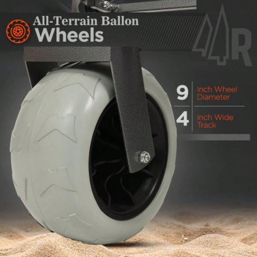 Beach Wagon with Big Wheels Sand 500lbs capacity - All Terrain Steel Frame Utility Cart with 9 Pneumatic Tires, Collapsible Folding Design, strap with multiuse bag, black
