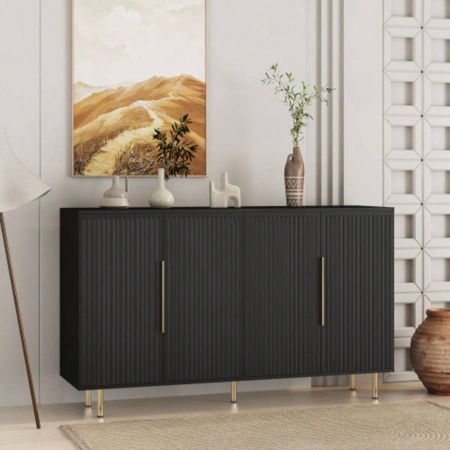 Black Modern Buffet Cabinet with Storage, Fluted Sideboard Large Buffet with Adjustable Shelves, Credenza, Accent Cabinet Console Table