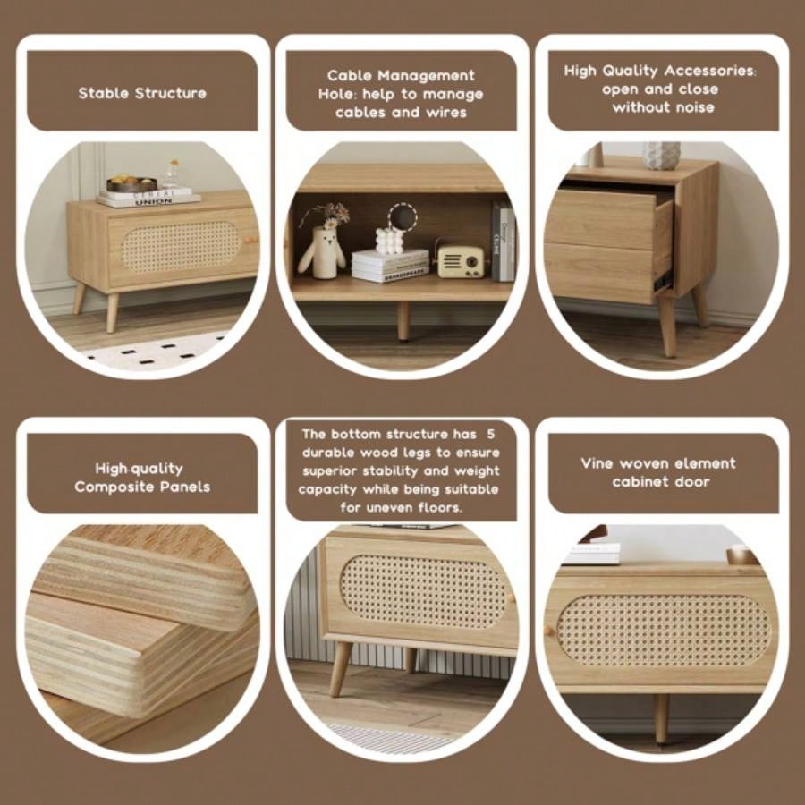 Boho TV Stand TVs up to 8039; 39; Modern Farmhouse Media Console, Entertainment Center with Solid Wood, TV Cabinet Living Room, Home Theatre