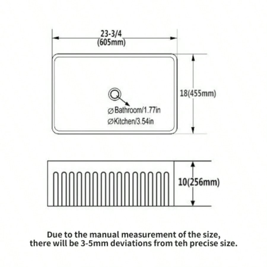 Ceramic White 24 inch Kitchen Single Bowl Farmhouse Sink Rectangular Vessel Sink