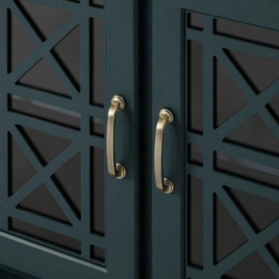 Classic Fretwork Detailed Glass - Door Sideboard - Dark Teal