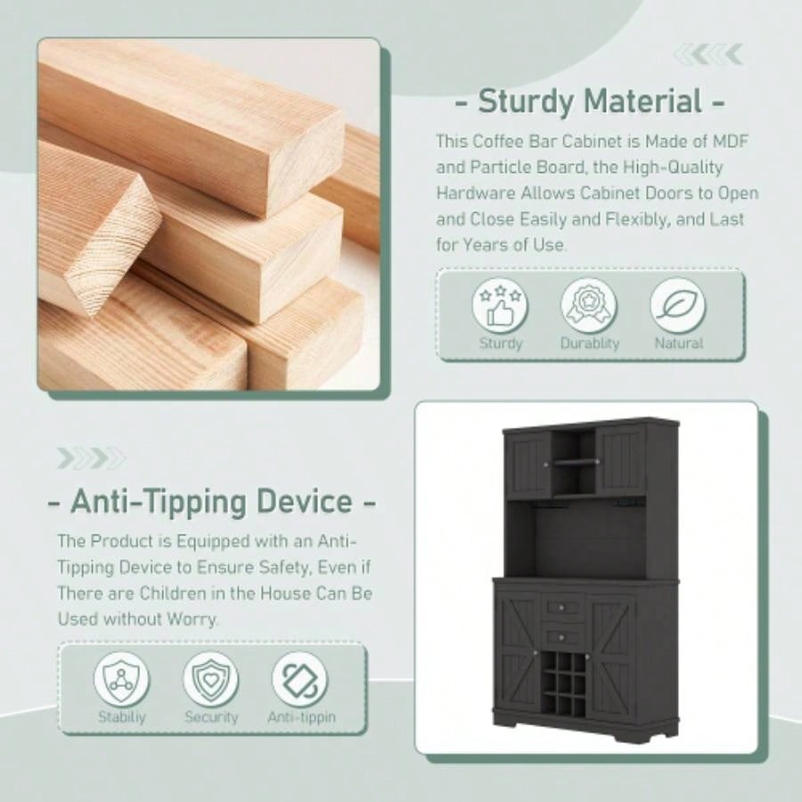 Coffee Bar Cabinet Kitchen Cabinet with Storage, Farmhouse Wine Cabinet with Drawers shelves and cabinets, Buffet Cabinet Wine Glass Racks Dining Room, Kitchen, Black
