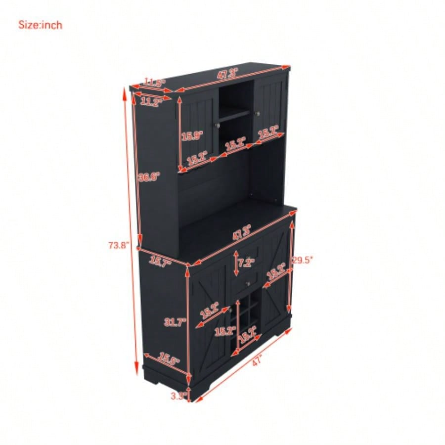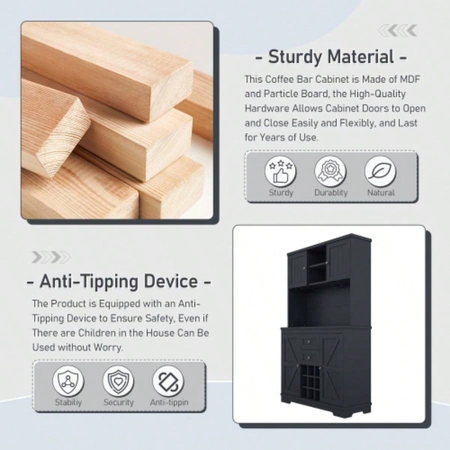 Coffee Bar Cabinet Kitchen Cabinet with Storage, Farmhouse Wine Cabinet with Drawers shelves and cabinets, Buffet Cabinet Wine Glass Racks Dining Room, Kitchen, Dark Blue