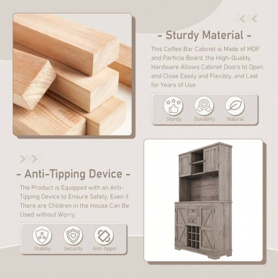 Coffee Bar Cabinet Kitchen Cabinet with Storage, Farmhouse Wine Cabinet with Drawers shelves and cabinets, Buffet Cabinet Wine Glass Racks Dining Room, Kitchen, Oak