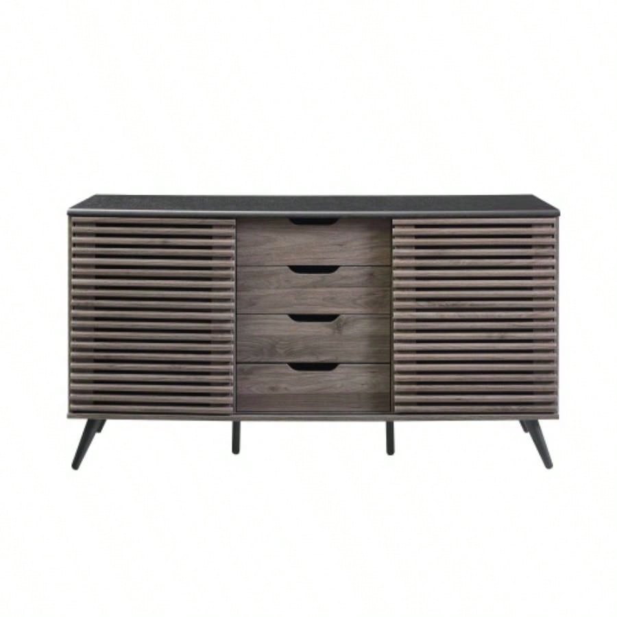 Contemporary Sliding Slat - Door Sideboard - Ebony/Slate