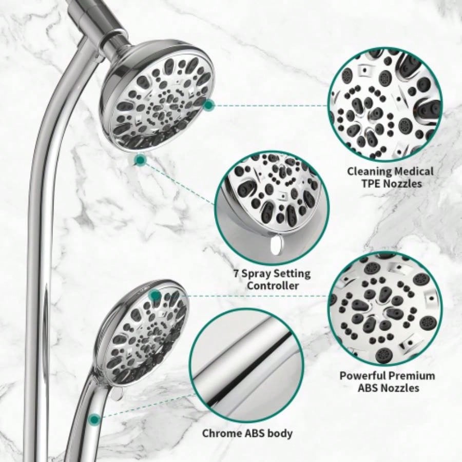 Drill - Stainless Steel Slide Bar Combo Rain Showerhead - Setting Hand, Dual Shower Spa System with Tup Spout Rough - in Included