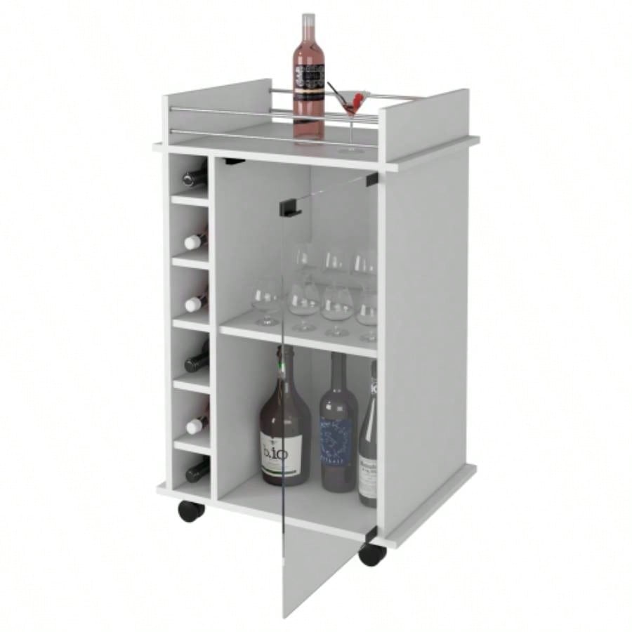 Dukat Bar Cart, Two Shelves, Six Built - in Wine Rack, Four Casters - White