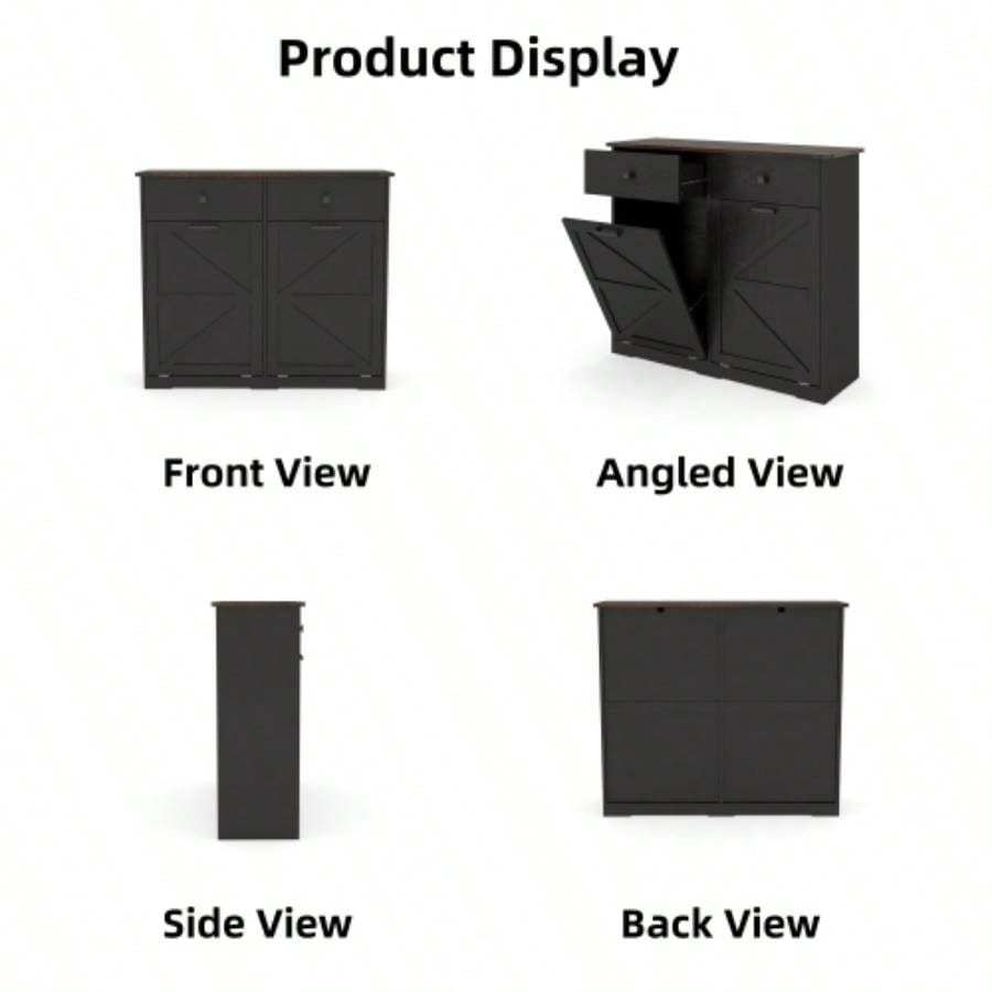 Farmhouse Black Double Tilt Out Trash Cabinet 20 Gallon Trash Cans, Standing Recycling Cabinet with Hideaway Drawer, Barn Door Style Laundry Sorter Cabinet, Tilt Out Trash Cabinet Kitchen