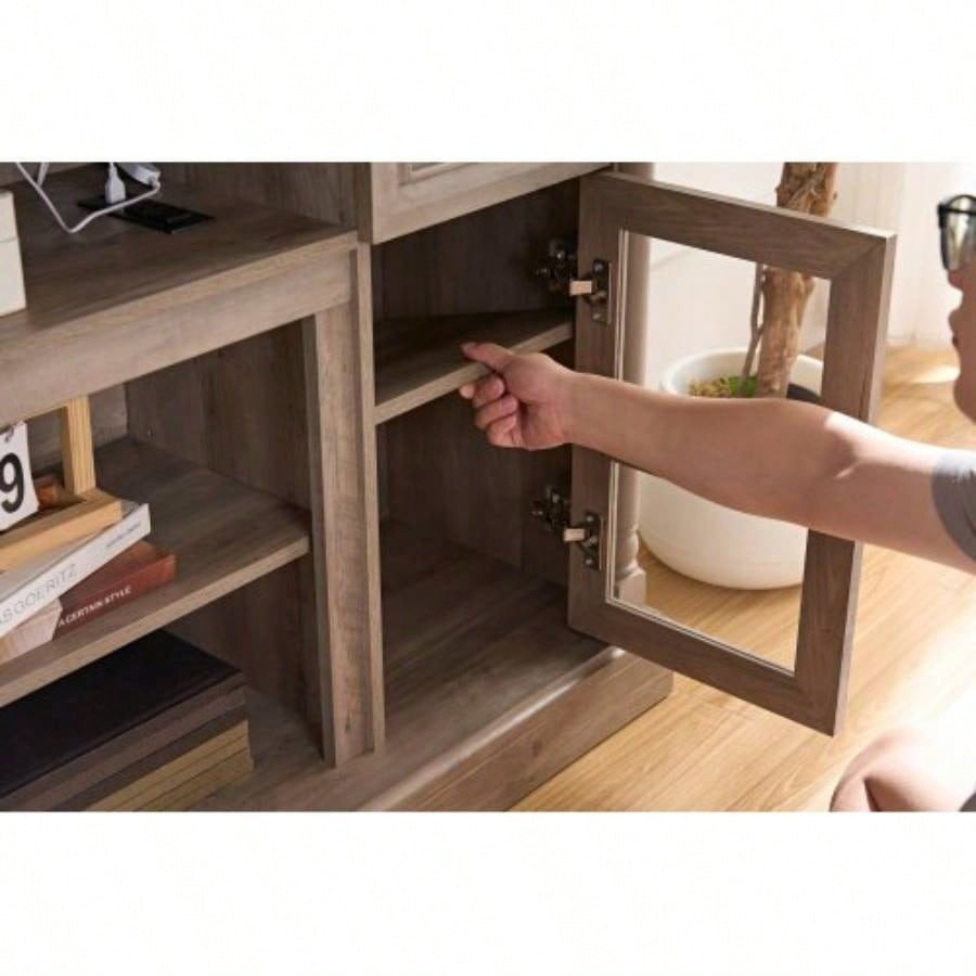 Farmhouse Fireplace TV Stand with Roman Column Styling, Up to 80 - inch TV, 70 - inch Modern Tall Entertainment Center with LED Lights, Living Room Media Console