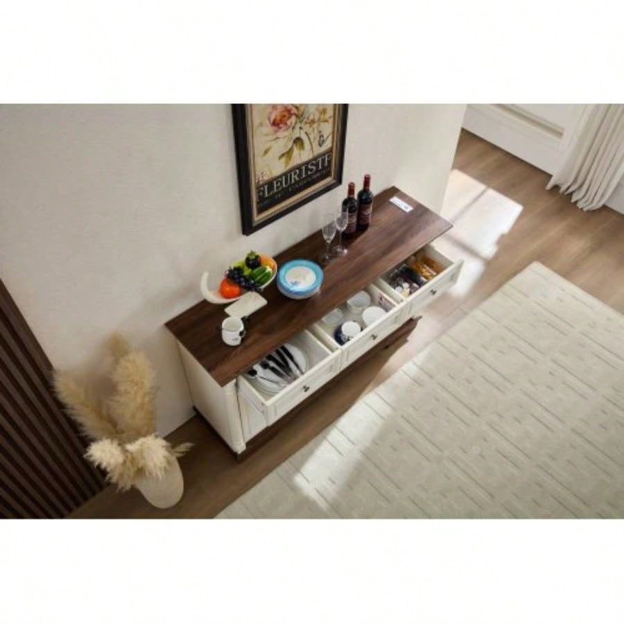 Farmhouse Style Kitchen Storage Cabinet, Large Wall Cabinet with Drawers and Doors in Roman Column Shape, Wooden Coffee Bar, Wine Cooler Living Room Hallway
