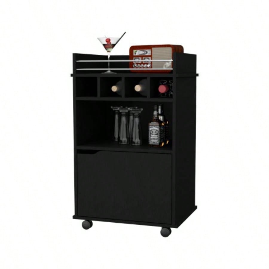 FM FURNITURE Crozier Bart Cart, with 1 shelf, 1 door and four built - in wine rack, black