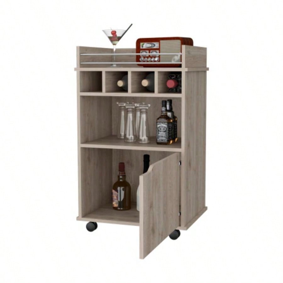 FM FURNITURE Crozier Bart Cart, with 1 shelf, 1 door and four built - in wine rack, Macadamia